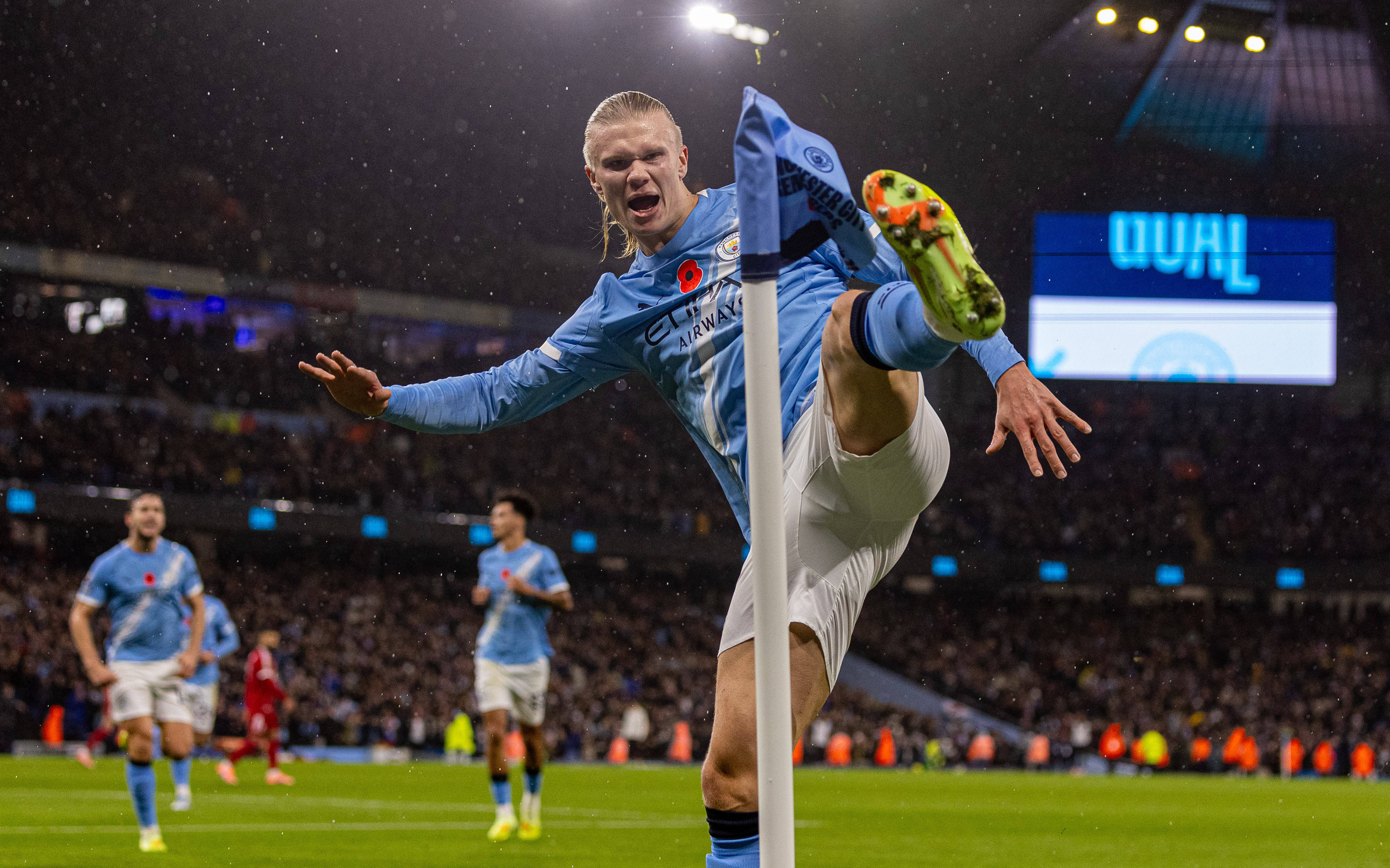 11月9日,曼彻斯特城队球员哈兰德庆祝进球。新华社发曼城和利物浦等分了英超最近8个赛季的冠军,两队在此时分的交锋历史已成一段英超佳话。此役恰逢瓜迪奥拉执教的第1000场比赛,他赛前示意这是“冥冥之中注定的比赛”。