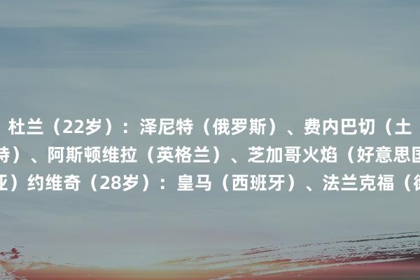 杜兰(22岁):泽尼特(俄罗斯)、费内巴切(土耳其)、利雅得得胜(沙特)、阿斯顿维拉(英格兰)、芝加哥火焰(好意思国)、恩维增加(哥伦比亚)约维奇(28岁):皇马(西班牙)、法兰克福(德国)、本菲卡(