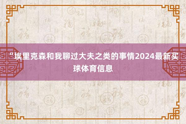 “埃里克森和我聊过大夫之类的事情2024最新买球体育信息