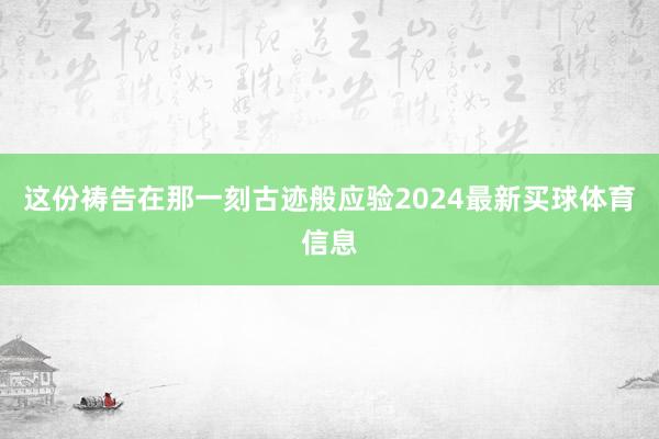这份祷告在那一刻古迹般应验2024最新买球体育信息