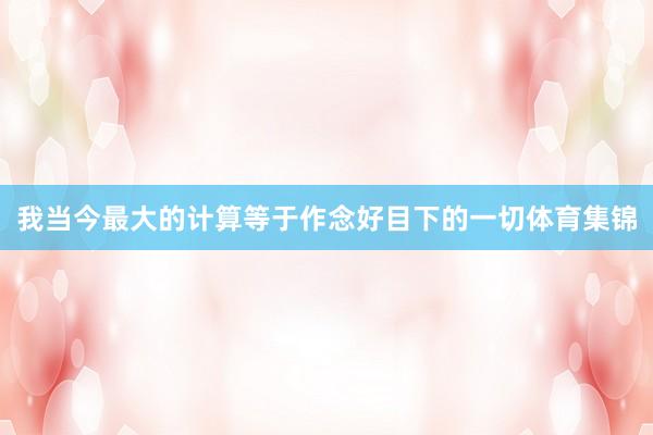 我当今最大的计算等于作念好目下的一切体育集锦