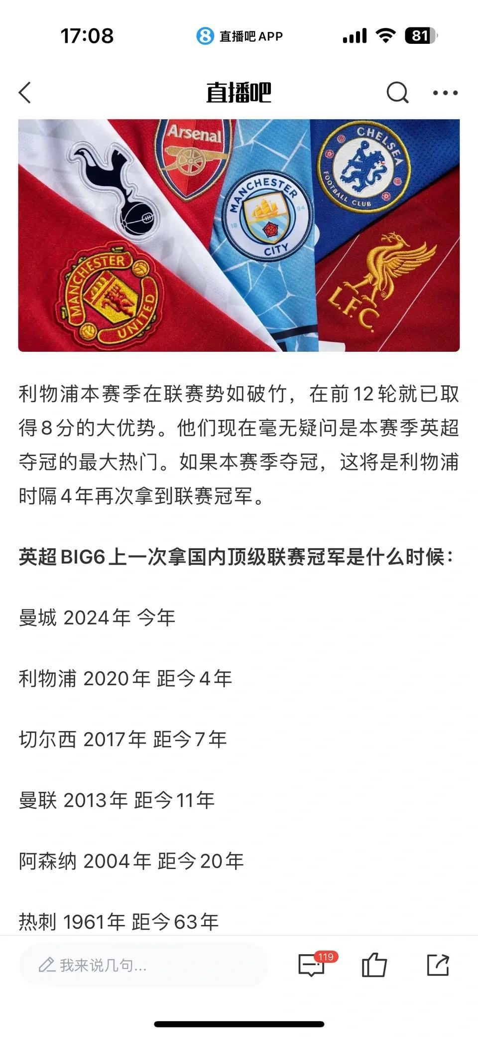 这个新闻英超权门齐很祸害体育集锦,英超Big6前次拿联赛冠军距离多久?