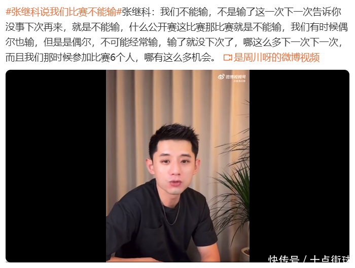 近期,乒乓球奥运冠军张继科在直播平共享往常国度队的粗暴竞争环境时,一番“咱们的比赛不可输”的言论激发烧议,也让咱们得以再行谛视国乒的成败不雅,原话为“咱们不可输,不是输了这一次下一次告诉你没事下次再来,即是不可输,什么公开赛这比赛那比赛即是不可输。咱们往常也会偶尔输,但齐是偶尔,弥散不可每每输,输了就没下次了,哪有那么多下次下次的,而且咱们当时辰参预比赛就6个东谈主,是以哪有这样多契机等着你。”这番言论连忙登上热搜,激发了球迷对国乒成败文化的大酌量