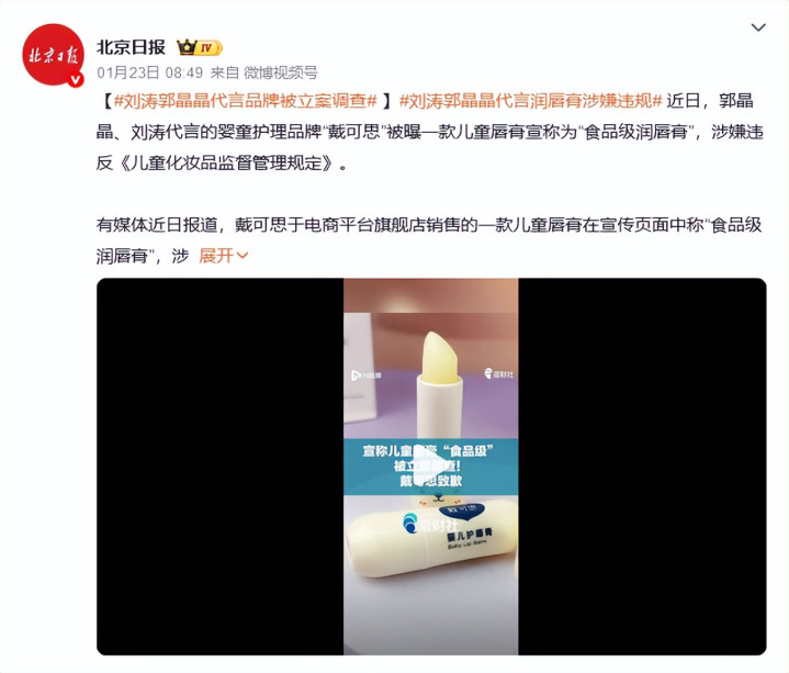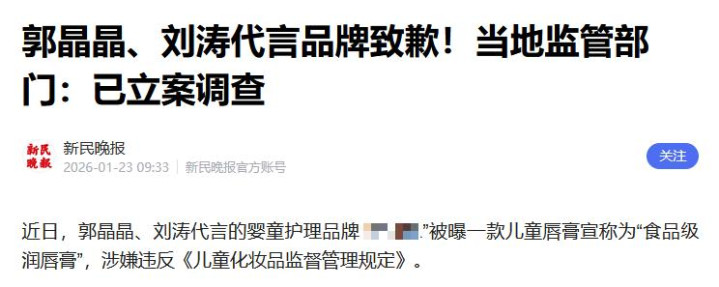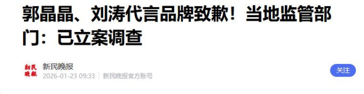 2026年1月23日,媒体报说念了郭晶晶代言的某品牌,被立案访问。