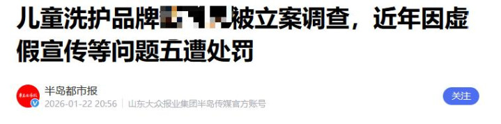 儿童洗护品牌被立案访问,比年因子虚宣传等问题五遭惩办——半岛皆市报
