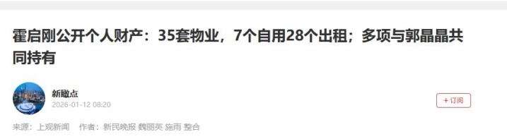 霍启刚公开个东说念主财产:35套物业,7个私用28个出租;多项与郭晶晶共同抓有——上不雅新闻