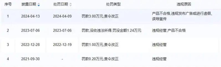 据不饱和统计,涉事品牌自2021年来,至少遭受5次行政惩办,最近一次是2025年底。