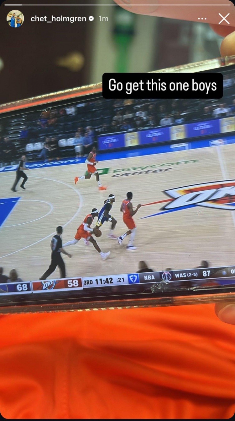 开场不久,雷霆球员切特-霍姆格伦在与豪杰球员安德鲁-维金斯空中造反后落地厄运不已,随后离场。