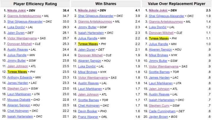 从本赛季的出勤、推崇看,马克西无疑是这赛季的76东谈主老大,但客不雅说,健康的恩比德有着比马克西更高的上限,2023年的MVP便是诠释。