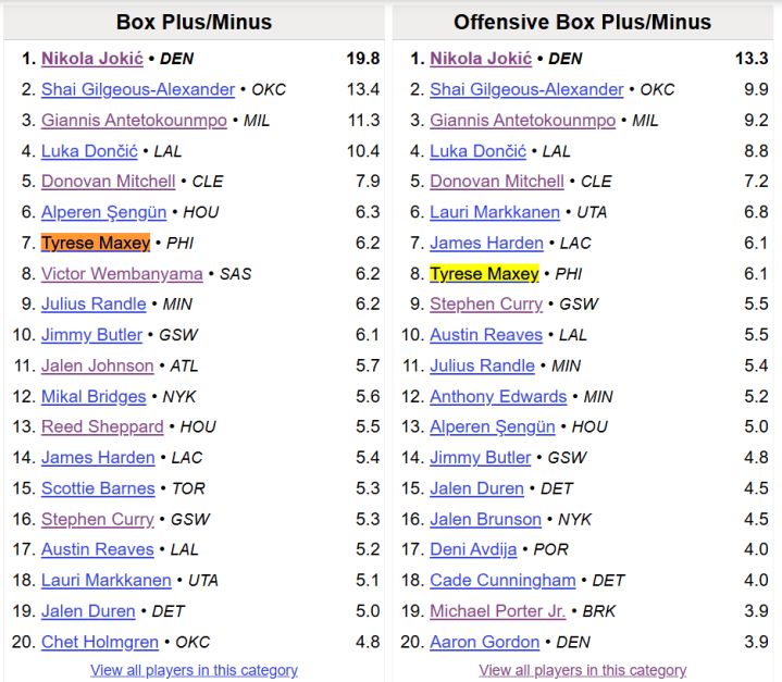 BBR的高阶数据,马克西的PER值、WinShare、VORP(不可替代值)、BPM鉴识排在定约第12、第7、第6、第7,多项数据后头跟的如故库里、文班这么的大佬。