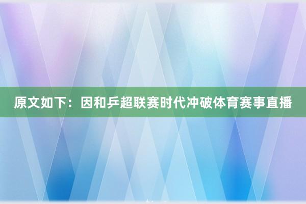 原文如下:因和乒超联赛时代冲破体育赛事直播